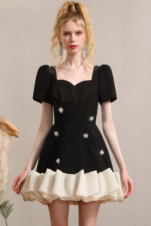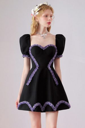 Vintage style little black dress woman summer French first love sense contrast lace design temperament gentle dress
