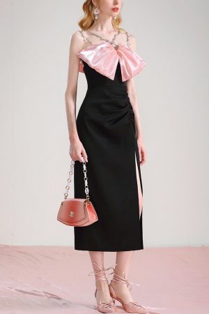 The dress dress banquet is elegant and light, the waist is cinched to show the thin temperament, and the sexy split bow slip skirt