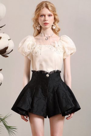 Temperament sense three-dimensional flower bubble sleeve blouse women's new age-reducing fashion commuter short sleeves in summer of 2023