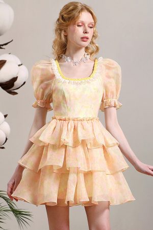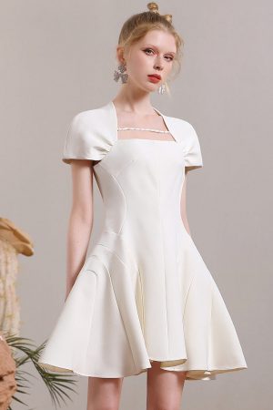 23-year-old summer dress, elegant temperament, fashion, simple waist and slim bubble sleeve skirt.