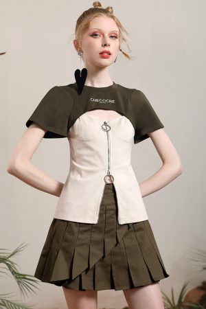 "Retrograde" military green denim skirt 2023 summer sweet cool retro fashion design sense pants skirt