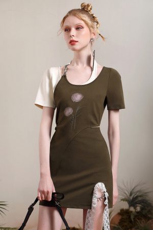 "Retro" sweet cool dress summer retro contrast print design hollow slim bag hip skirt