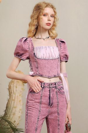 "Romantic reorganization cowboy" niche design pink blouse femininity age-reducing fashion slim short sleeves