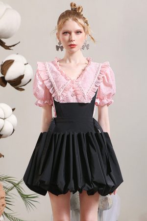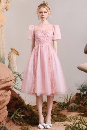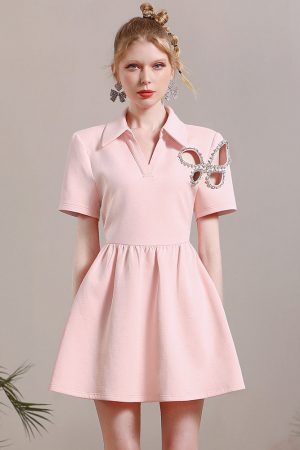 Age-reducing pink dress summer fashion design Butterfly hollow open waist polo neck leisure sports skirt