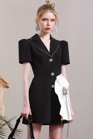 3D Flower Black Suit Dress Summer Elegant Small Style Design Sense Commuter Single breasted Dress
