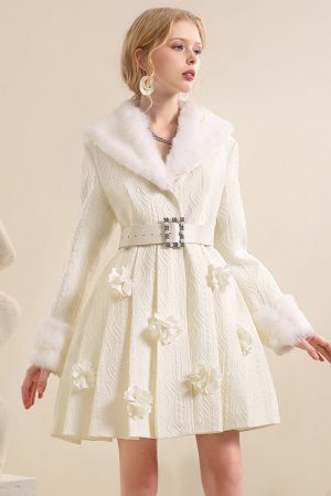 White long-sleeved dress Women’s new style chic design feeling plush feeling embossed coat skirt