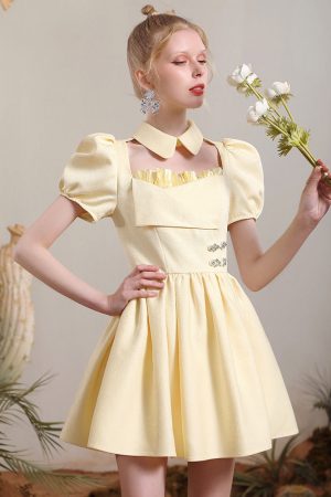 French celebrity style dress women’s new elegant lace-up square neck ruffled long sleeve short skirt in early autumn