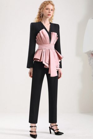 Royal sister fan suit pants 2023 early spring temperament design sense irregular top shows thin suit black trousers