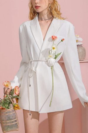 Small blazer women’s new niche design in autumn gentle chic three-dimensional rose lace-up top