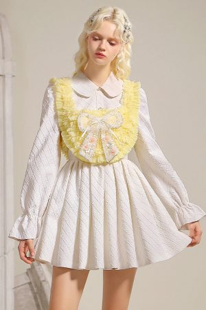 Sweet Bowknot Vest Women’s Autumn Design Light Yellow Small Vest with Wooden Ears