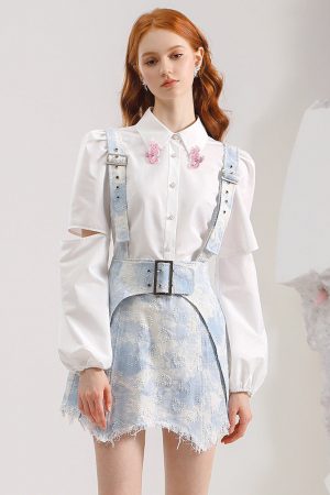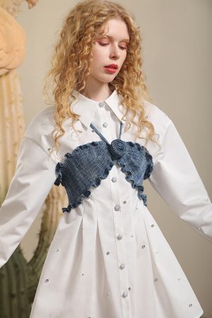 Temperament: white shirt skirt, denim, halterneck, bandeau vest, foreign age-reducing fashion, loose dress