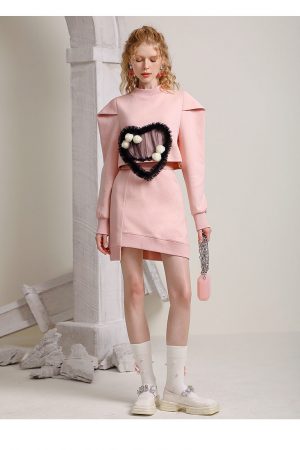 Sweet girl pink sweatshirt suit skirt early autumn new love top temperament irregular high-waisted skirt