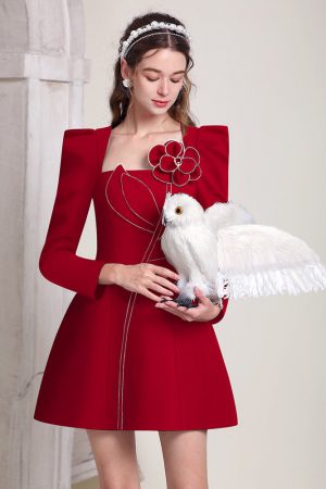 Three-dimensional flower dress female autumn new elegant temperament retro Hepburn style little red dress