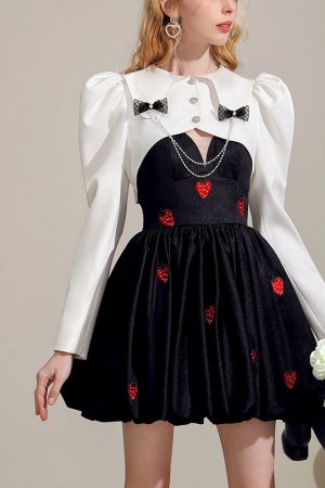 Women's dress design sense niche sweet cool wind bow white coat sling fluffy little black dress suit