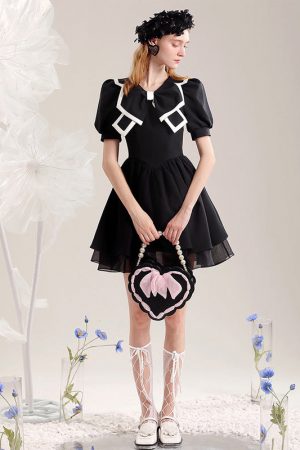Sweet and cool little black dress in summer, playful and age-reducing first love design, chic bowknot, waist closing, thin and puffy skirt