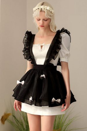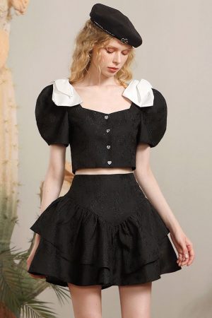 Sweet Cool Black Suit Skirt Reduced Age Bow Short Top Wrapped Waist to Show Slim Bunny Half Skirt Two Piece Set