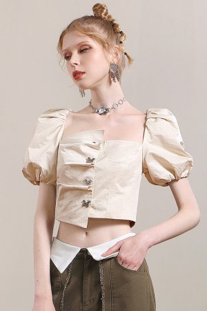 Sweet and cool retro top women's summer 2023 niche design sense fashion asymmetric waist slim short sleeves