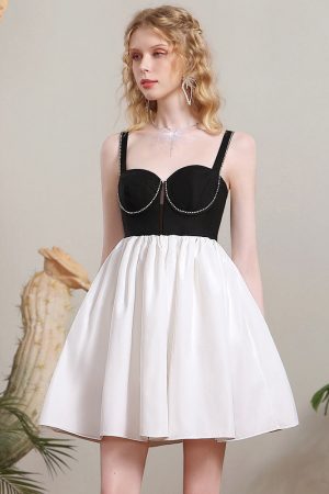 Summer 2023 new fashion contrast slip dress temperament is simple, age-reducing waist dress is small