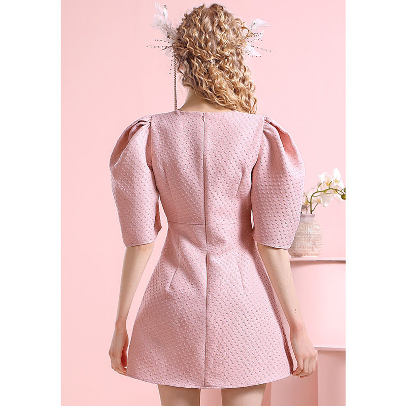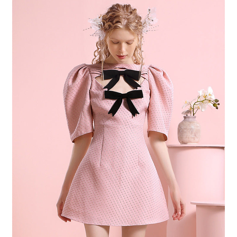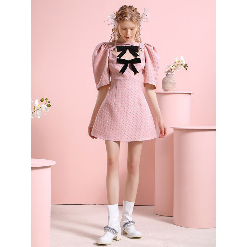 Pink dress women’s design sense Small people’s gentle and sweet style Small people’s contrast color bow reducing age skirt
