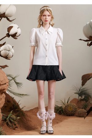 [Sleeping Dream] Off White Shirt Women’s 2023 Summer Temperament Simple Fashion Commuter Top