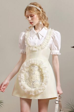 [Sleeping Dream] Gentle temperament vest skirt fashion design sense three-dimensional beaded ruffled skirt