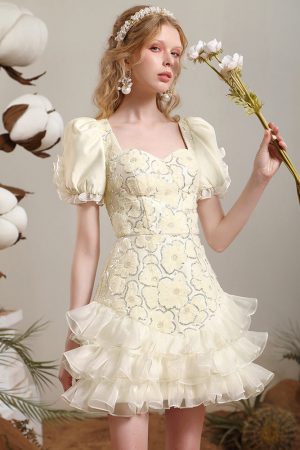 [Sleeping Dream] Dress Female Gentle Three-dimensional Flower Bead Temperament Romantic flounce skirt